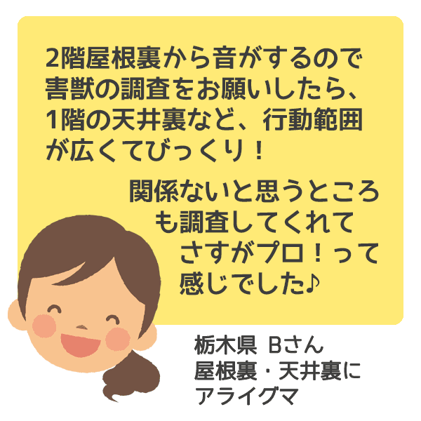 無料で調査・お見積り後、お客様がご納得いただけましたらイタチを駆除・撃退をさせていただきます。調査の結果、イタチではなく違う害獣だった場合でもお見積りさせていただきますのでご安心ください。
