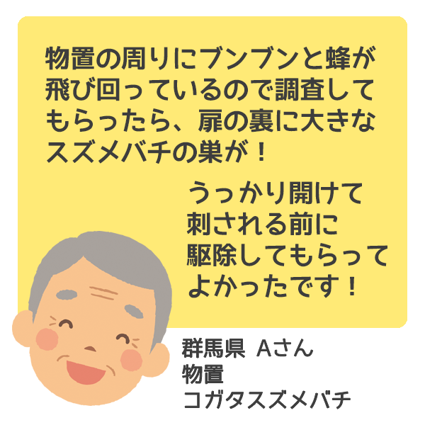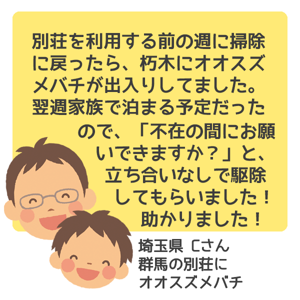 その他、モンスズメバチ、ヒメスズメバチなどの場合でも、お見積りして駆除いたします。