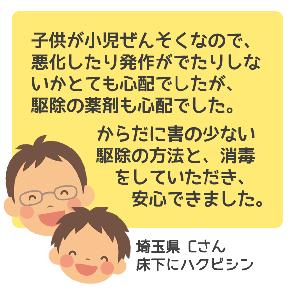 駆除から1か月以内に、万一再発した際には、責任をもって駆除させていただきます。